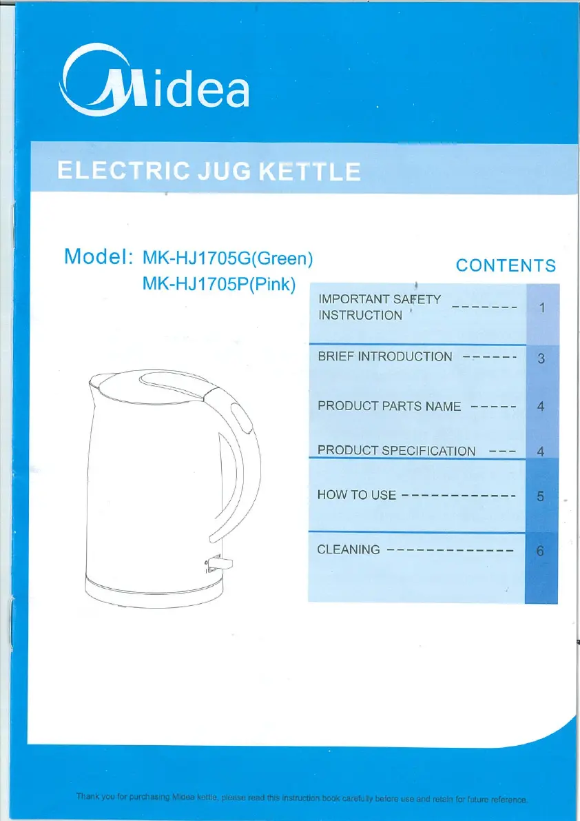 Midea MK-HJ1705G(Green) Bedienungsanleitung