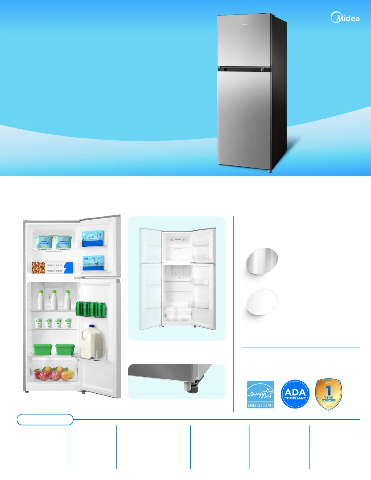 Lies die bedienungsanleitung für Midea MRT10D3BWW (2 Seiten) kostenlos online; sie gehört zur Kategorie Kühlschrank. Dieses Handbuch wurde von 2 Personen als hilfreich bewertet und erhielt im Schnitt 5.0 Sterne aus 8 Bewertungen. Hast du eine Frage zu Midea MRT10D3BWW oder möchtest du andere Nutzer dieses Produkts befragen? Stelle eine Frage