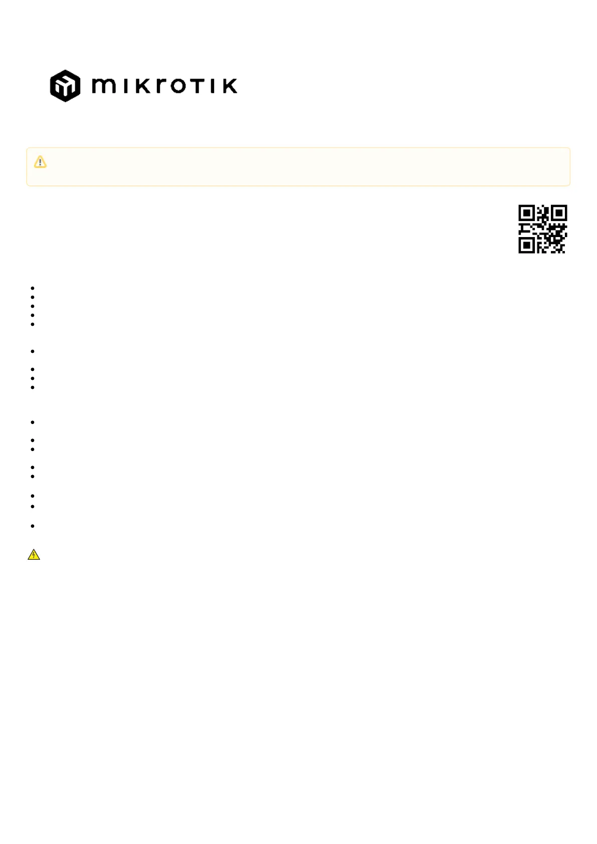 Before you work on any MikroTik equipment, be aware of the hazards involved with electrical circuitry, and be familiar with standard practices for preventing