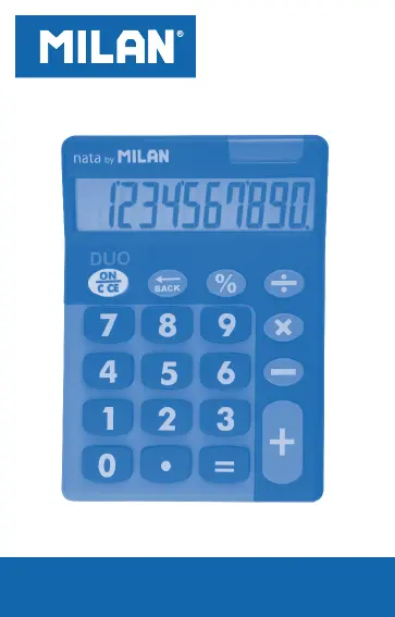 Lies die bedienungsanleitung für Milan 150610TDPRBL (64 Seiten) kostenlos online; sie gehört zur Kategorie Kalkulator. Dieses Handbuch wurde von 49 Personen als hilfreich bewertet und erhielt im Schnitt 4.9 Sterne aus 7 Bewertungen. Hast du eine Frage zu Milan 150610TDPRBL oder möchtest du andere Nutzer dieses Produkts befragen? Stelle eine Frage