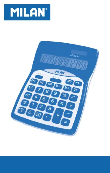 Lies die bedienungsanleitung für Milan 152016 (104 Seiten) kostenlos online; sie gehört zur Kategorie Kalkulator. Dieses Handbuch wurde von 41 Personen als hilfreich bewertet und erhielt im Schnitt 5.0 Sterne aus 21 Bewertungen. Hast du eine Frage zu Milan 152016 oder möchtest du andere Nutzer dieses Produkts befragen? Stelle eine Frage
