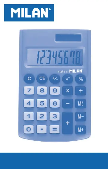 Lies die bedienungsanleitung für Milan 159506 (64 Seiten) kostenlos online; sie gehört zur Kategorie Kalkulator. Dieses Handbuch wurde von 41 Personen als hilfreich bewertet und erhielt im Schnitt 4.7 Sterne aus 21 Bewertungen. Hast du eine Frage zu Milan 159506 oder möchtest du andere Nutzer dieses Produkts befragen? Stelle eine Frage