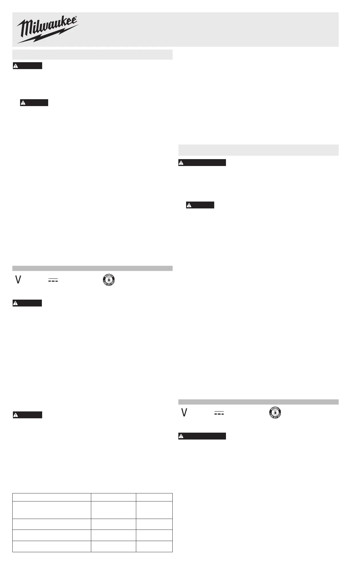 Use MILWAUKEE Li-Ion battery packs only on recommended