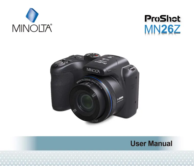 Lies die bedienungsanleitung für Minolta ProShot MN26Z (104 Seiten) kostenlos online; sie gehört zur Kategorie Fotokamera. Dieses Handbuch wurde von 6 Personen als hilfreich bewertet und erhielt im Schnitt 3.5 Sterne aus 3.5 Bewertungen. Hast du eine Frage zu Minolta ProShot MN26Z oder möchtest du andere Nutzer dieses Produkts befragen? Stelle eine Frage