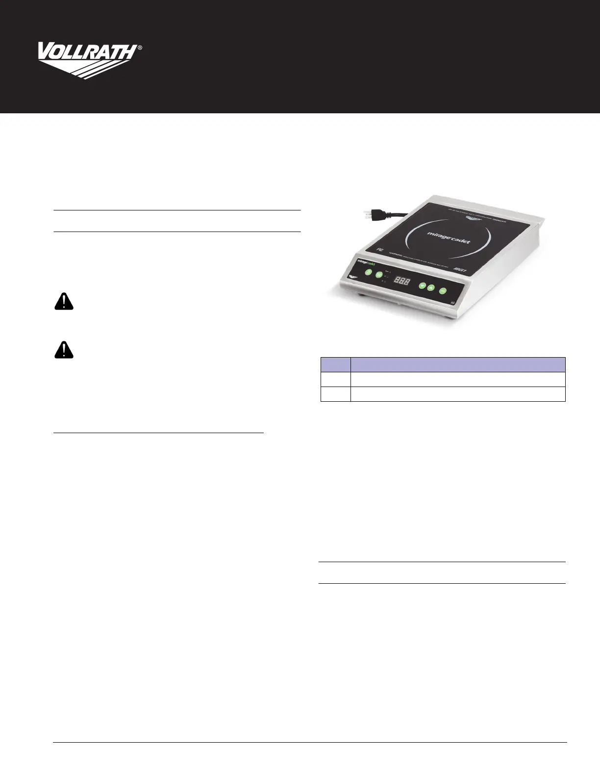 Thank you for purchasing this Vollrath equipment. Before operating the