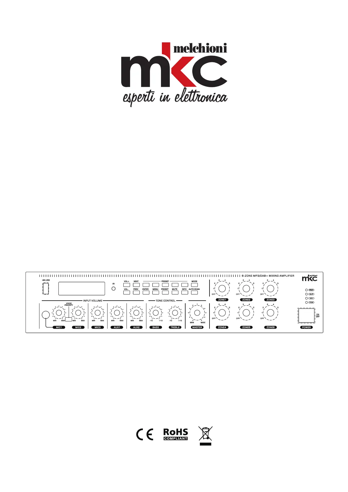 PA AUDIO AMPLIFIERS 6 ZONES 100V/ 4-16Ω, USB / BT / FM - DAB+