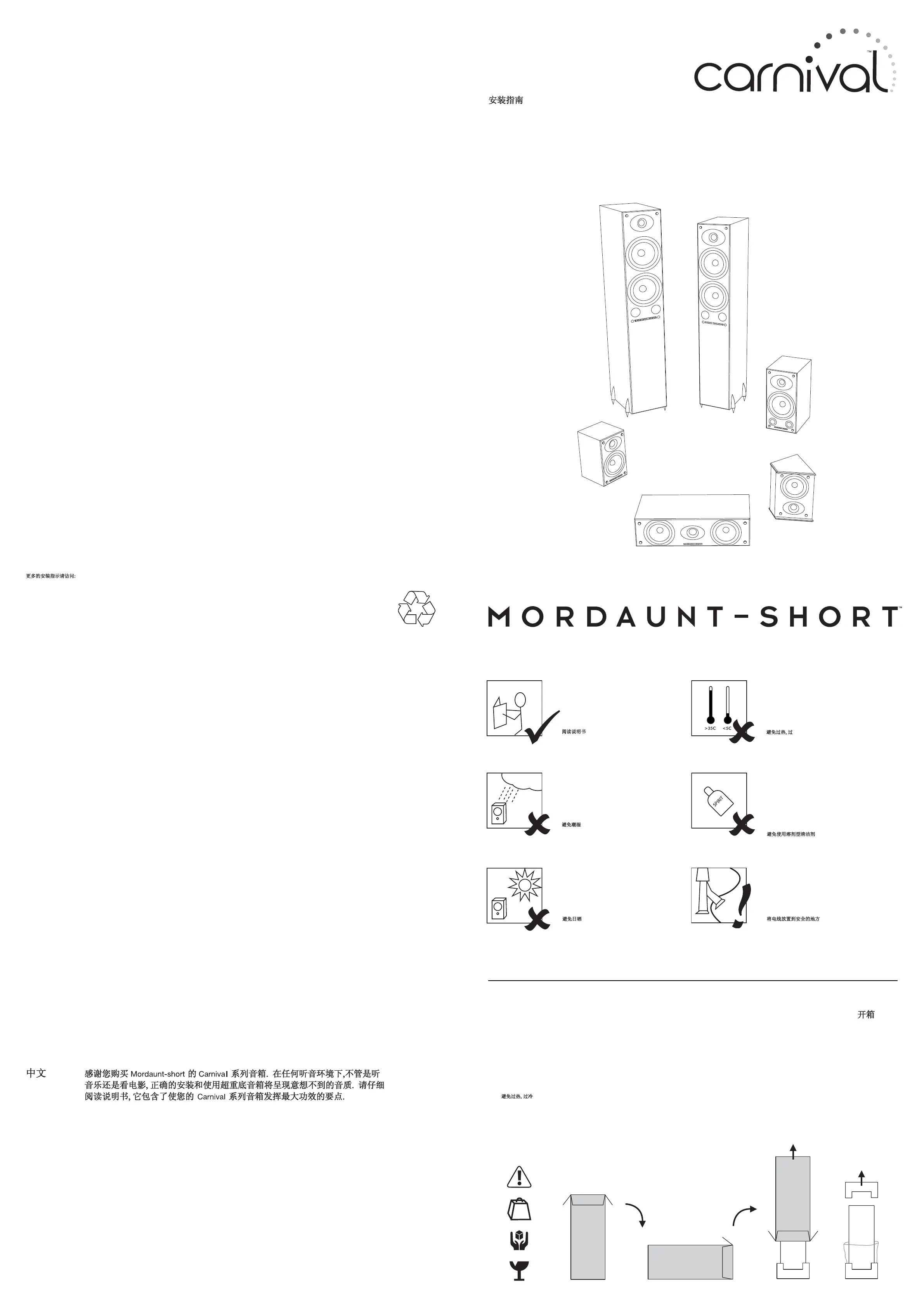 Thank you for purchasing these Mordaunt-Short Carnival series loudspeakers. Installed and