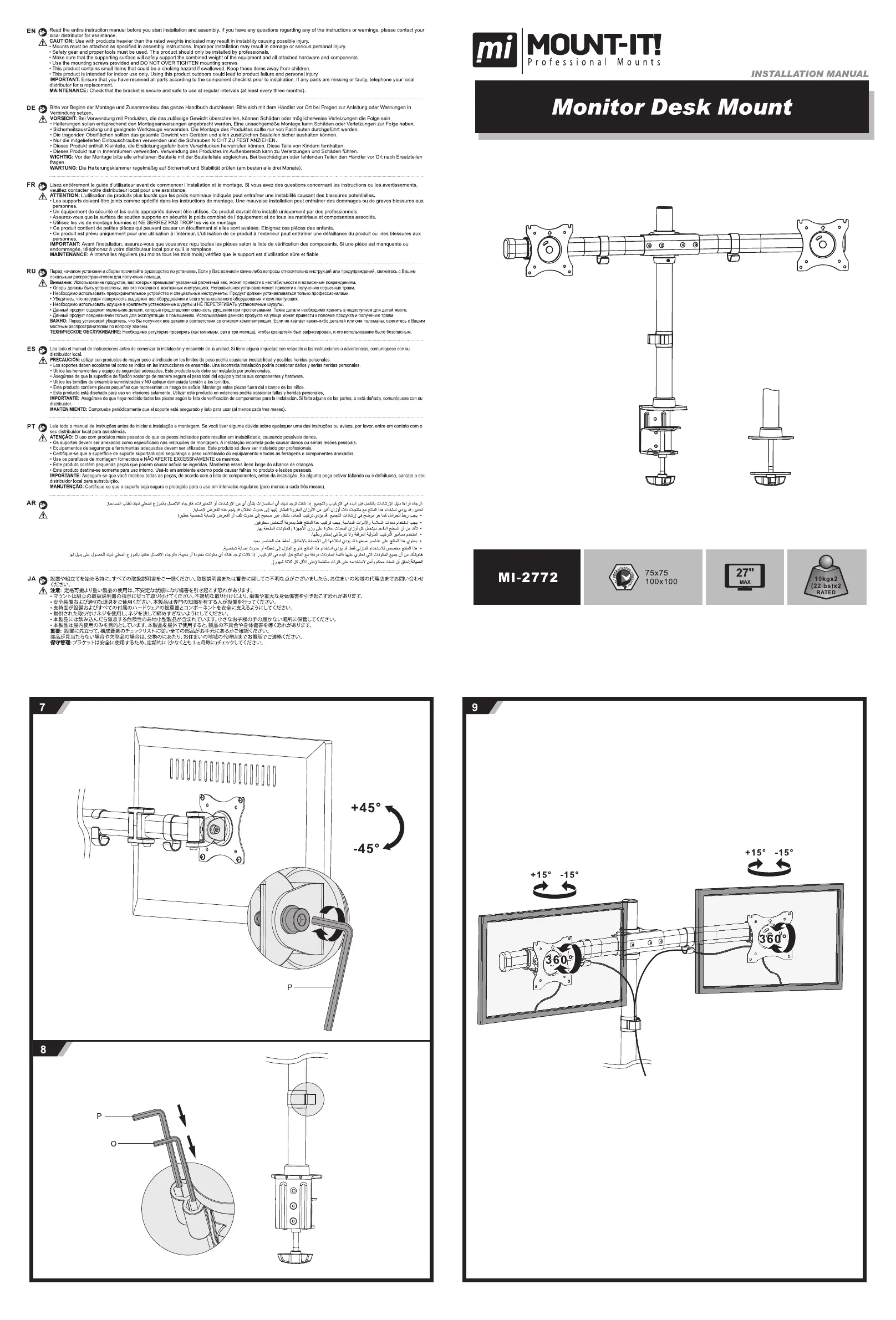 Lies die bedienungsanleitung für Mount-It! MI-2772 (124 Seiten) kostenlos online; sie gehört zur Kategorie Nicht kategorisiert. Dieses Handbuch wurde von 2 Personen als hilfreich bewertet und erhielt im Schnitt 4.9 Sterne aus 9 Bewertungen. Hast du eine Frage zu Mount-It! MI-2772 oder möchtest du andere Nutzer dieses Produkts befragen? Stelle eine Frage