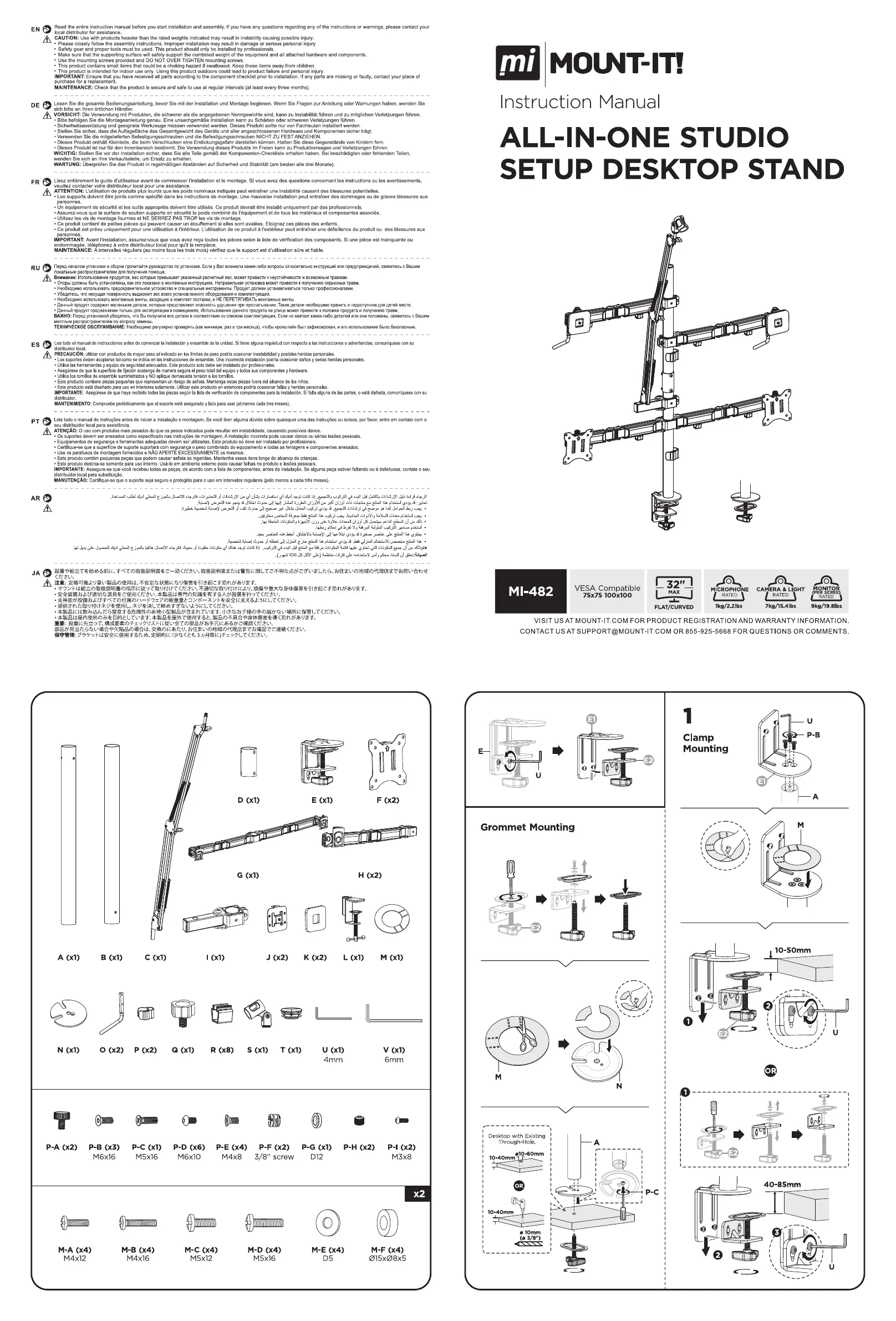 Lies die bedienungsanleitung für Mount-It! MI-482 (2 Seiten) kostenlos online; sie gehört zur Kategorie Flachbildschirmunterstützung. Dieses Handbuch wurde von 24 Personen als hilfreich bewertet und erhielt im Schnitt 4.4 Sterne aus 12.5 Bewertungen. Hast du eine Frage zu Mount-It! MI-482 oder möchtest du andere Nutzer dieses Produkts befragen? Stelle eine Frage