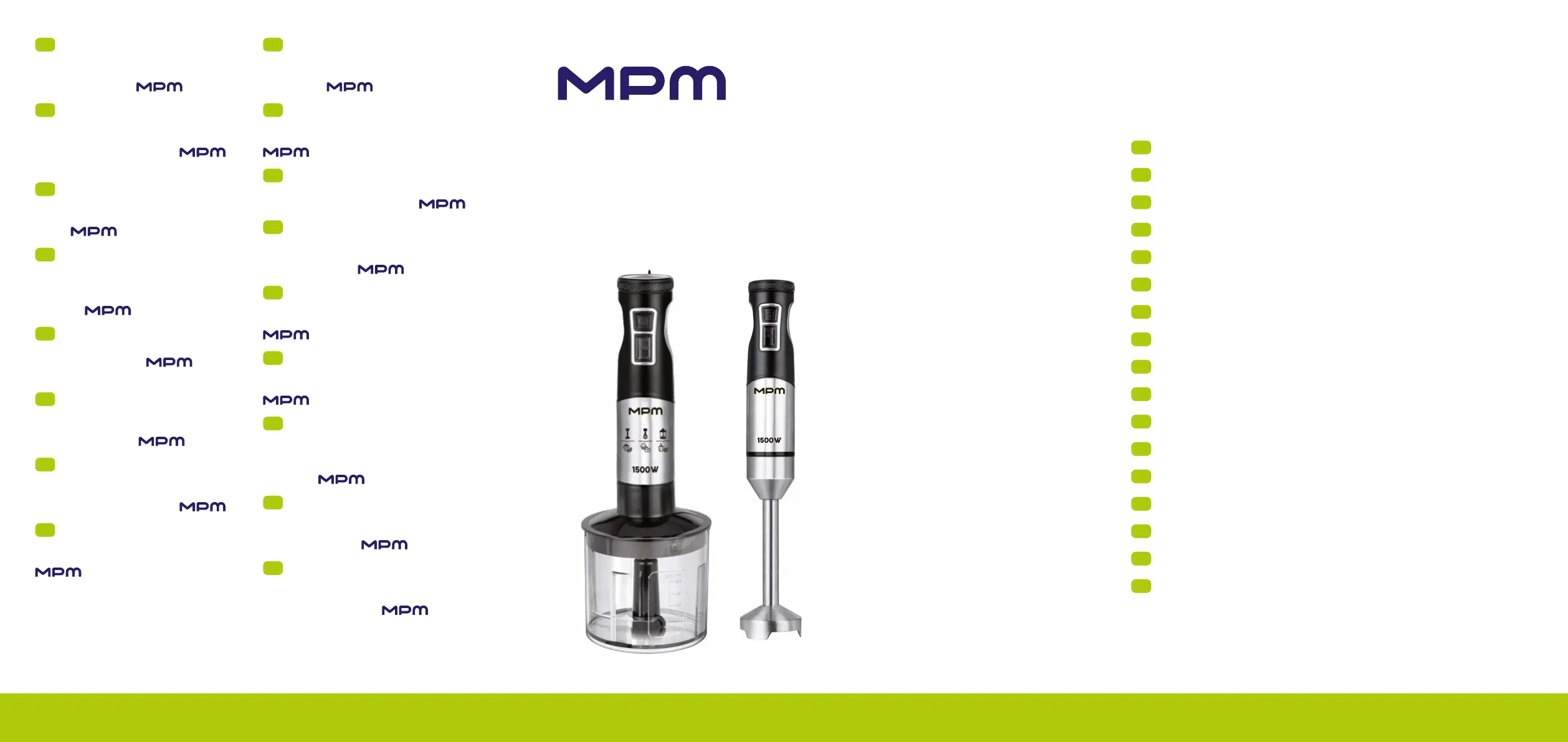 Lies die bedienungsanleitung für MPM MBL-33M (86 Seiten) kostenlos online; sie gehört zur Kategorie Mixer. Dieses Handbuch wurde von 38 Personen als hilfreich bewertet und erhielt im Schnitt 4.9 Sterne aus 3 Bewertungen. Hast du eine Frage zu MPM MBL-33M oder möchtest du andere Nutzer dieses Produkts befragen? Stelle eine Frage