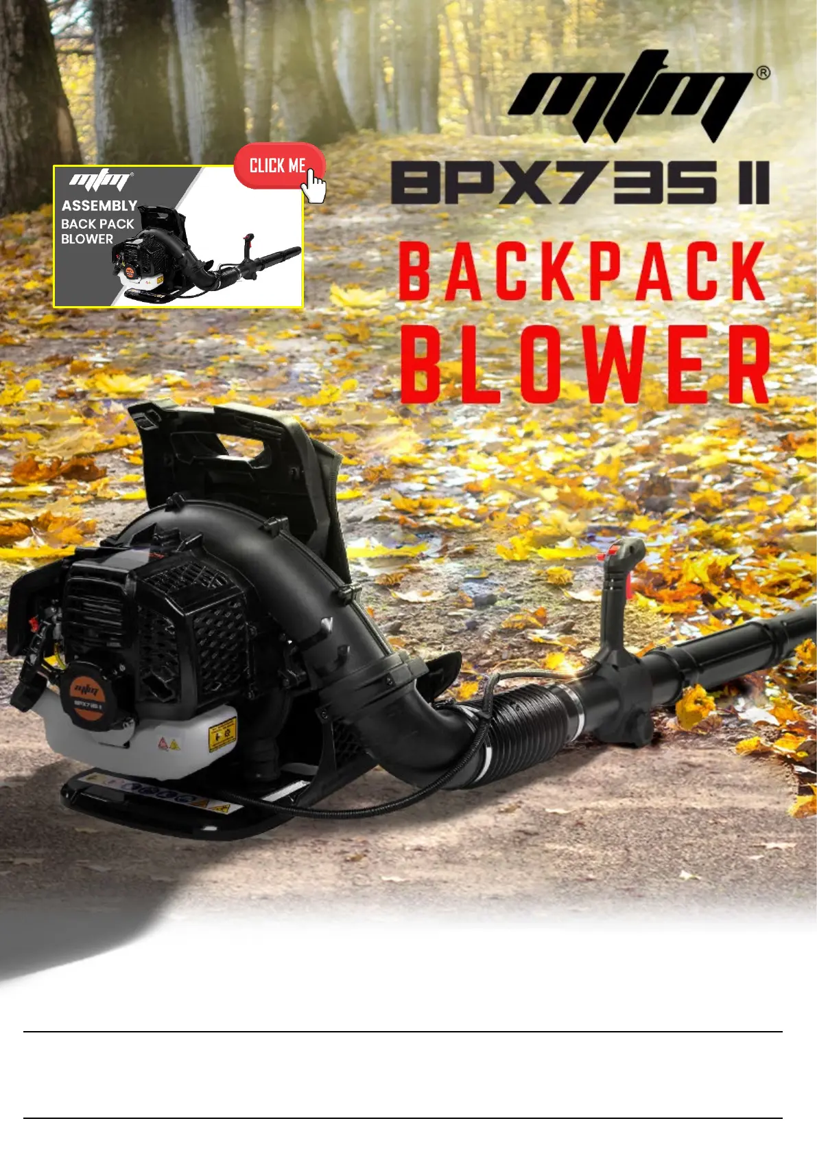 Lies die bedienungsanleitung für MTM BPX735 II (22 Seiten) kostenlos online; sie gehört zur Kategorie Laubbläser. Dieses Handbuch wurde von 50 Personen als hilfreich bewertet und erhielt im Schnitt 4.5 Sterne aus 25.5 Bewertungen. Hast du eine Frage zu MTM BPX735 II oder möchtest du andere Nutzer dieses Produkts befragen? Stelle eine Frage