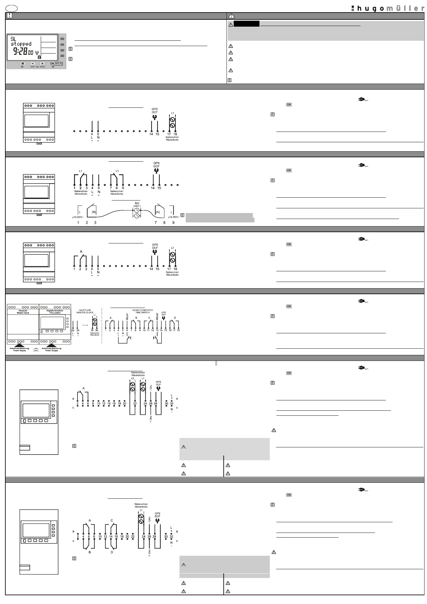 (Master clock = terminals 22/23 / Time switch = terminals 4/5).