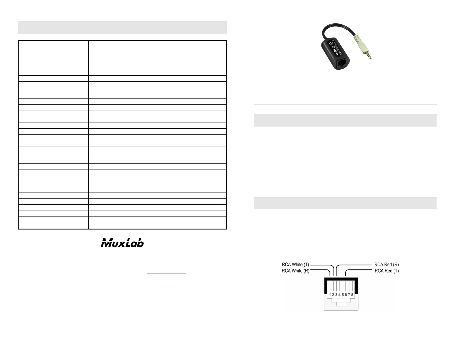 MuxLab Stereo PC-Audio Balun Bedienungsanleitung