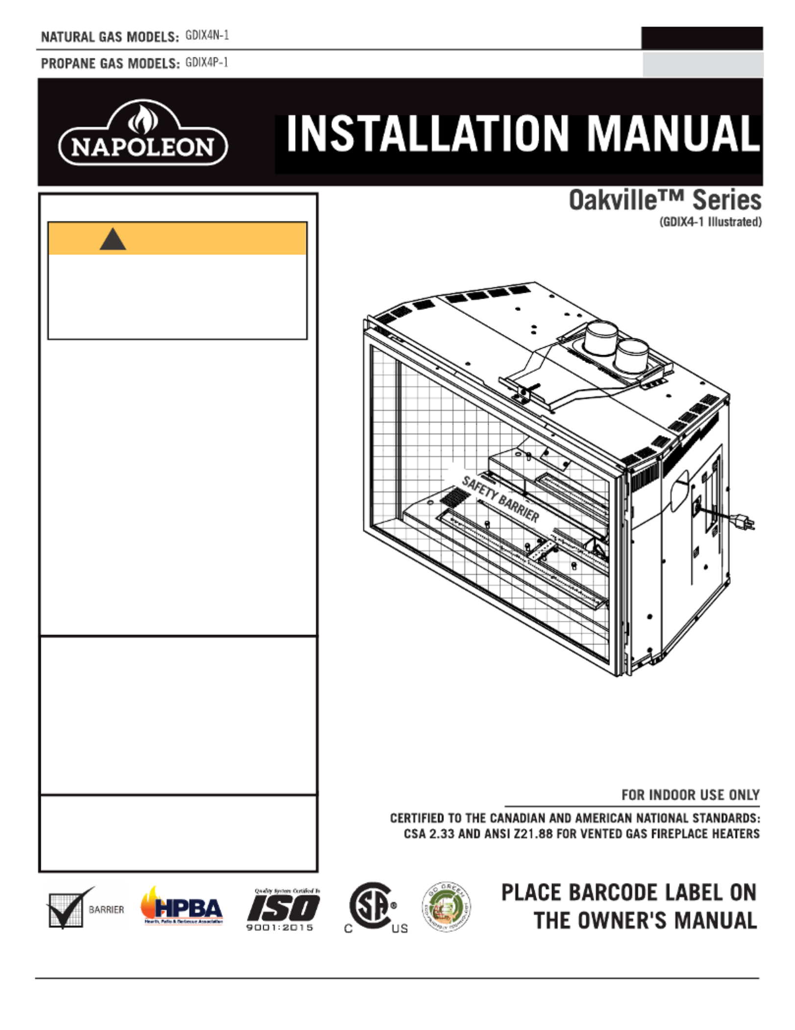 Lies die bedienungsanleitung für Napoleon Oakville X4 (84 Seiten) kostenlos online; sie gehört zur Kategorie Kamin. Dieses Handbuch wurde von 14 Personen als hilfreich bewertet und erhielt im Schnitt 4.4 Sterne aus 7.5 Bewertungen. Hast du eine Frage zu Napoleon Oakville X4 oder möchtest du andere Nutzer dieses Produkts befragen? Stelle eine Frage