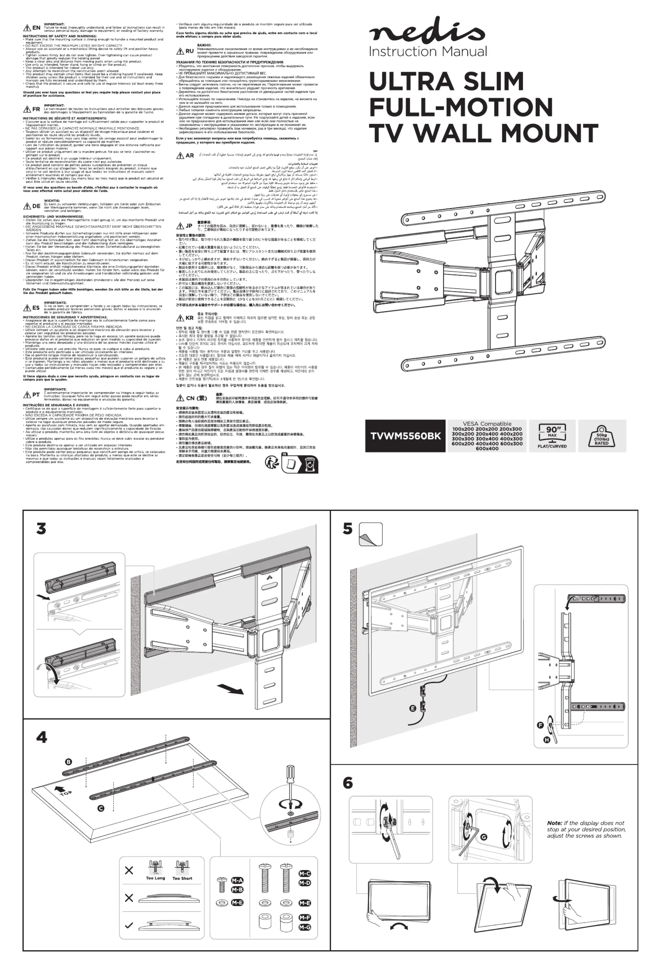 Lies die bedienungsanleitung für Nedis TVWM5560BK (2 Seiten) kostenlos online; sie gehört zur Kategorie Wandsteun. Dieses Handbuch wurde von 16 Personen als hilfreich bewertet und erhielt im Schnitt 4.8 Sterne aus 9 Bewertungen. Hast du eine Frage zu Nedis TVWM5560BK oder möchtest du andere Nutzer dieses Produkts befragen? Stelle eine Frage