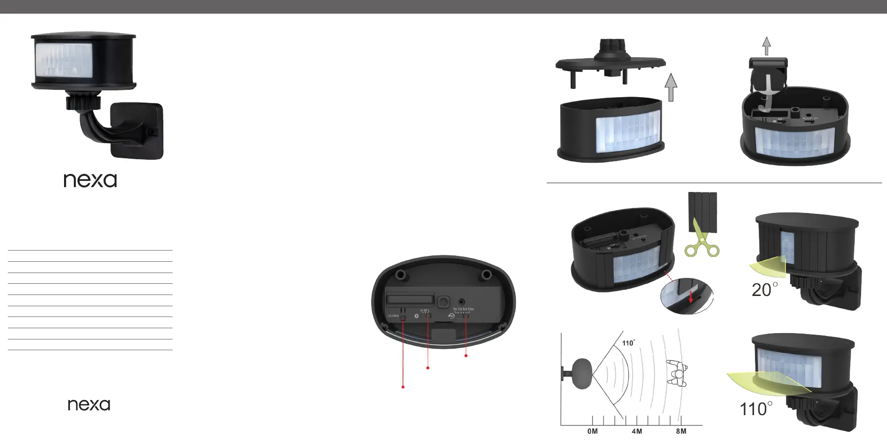 • Justera linsens täckning för att styra detekteringsvinkel (max