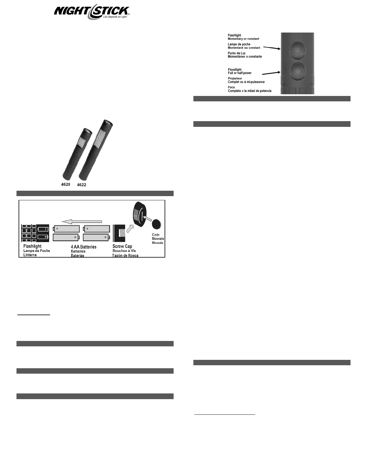 Model 4620 / 4622 Flashlight Instructions