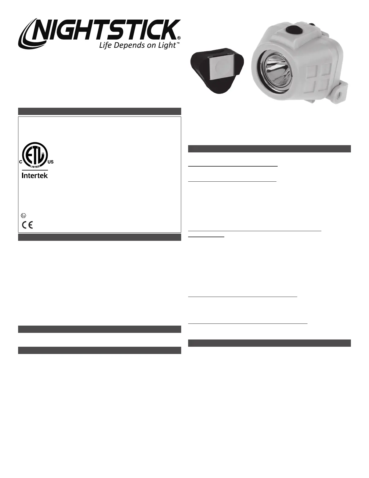 Intrinsically Safe Headlamp. They include important safety information and