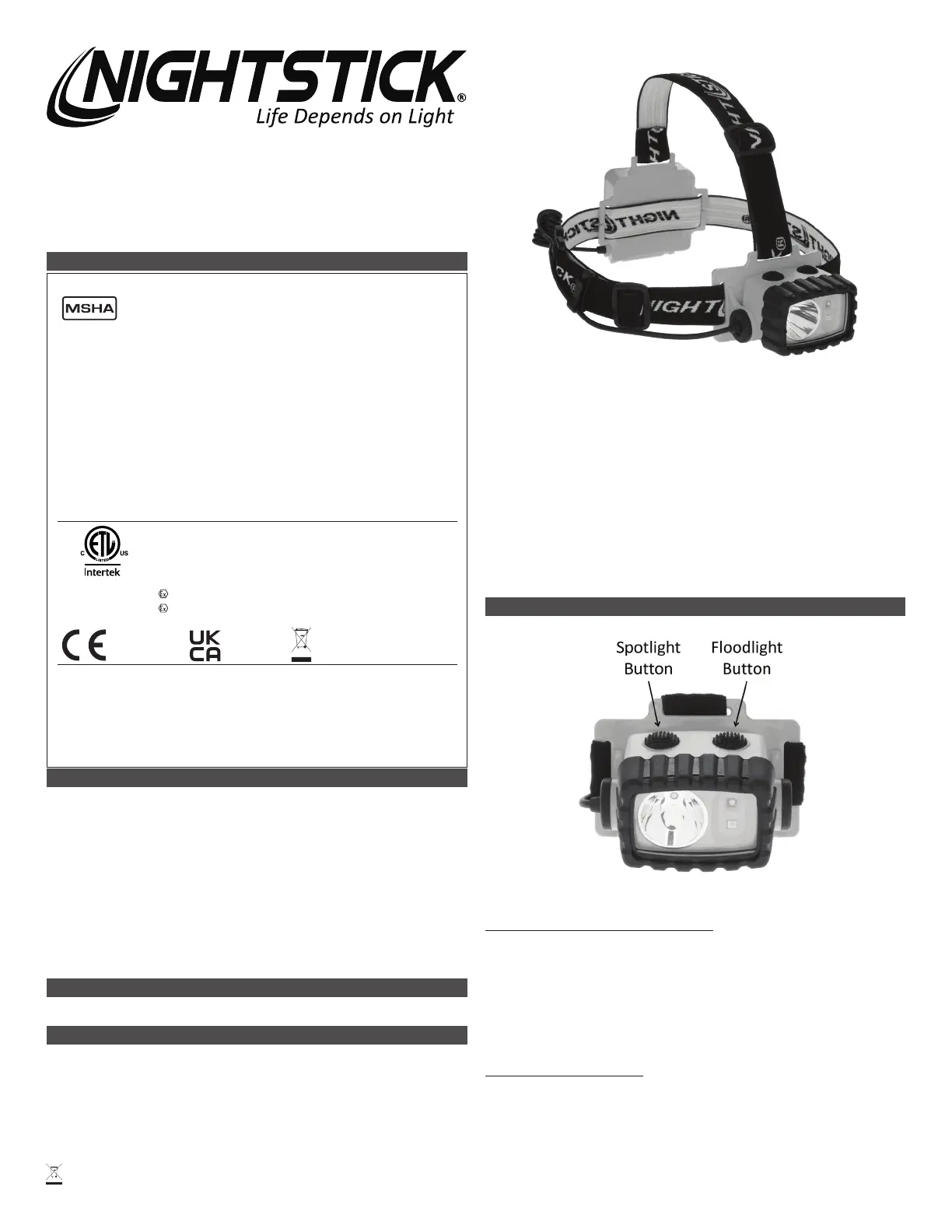 The Model XPP-5456G Safety Headlamp is approved as a mine light