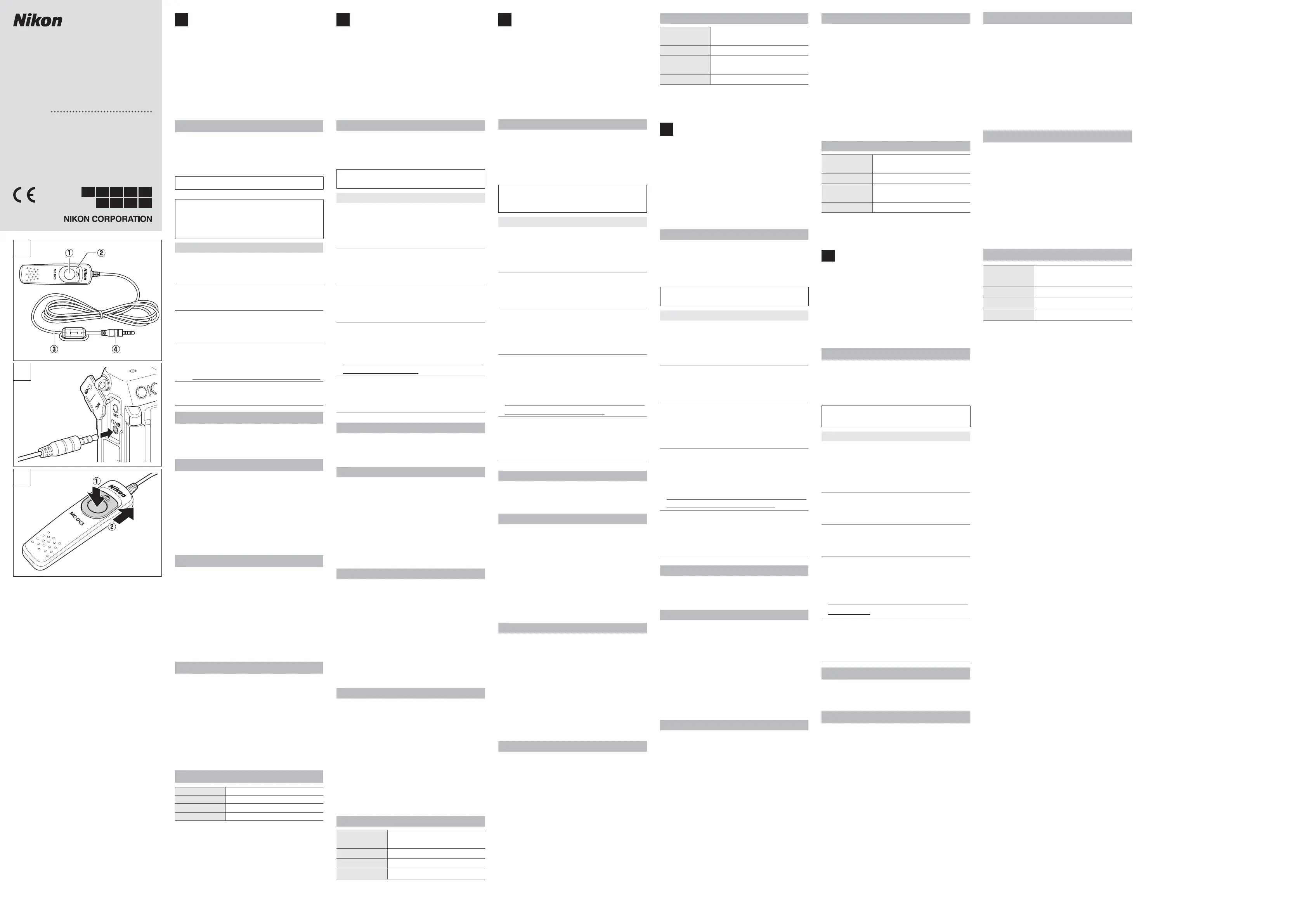 Lies die bedienungsanleitung für Nikon MC-DC3 (2 Seiten) kostenlos online; sie gehört zur Kategorie Fernbedienung. Dieses Handbuch wurde von 23 Personen als hilfreich bewertet und erhielt im Schnitt 4.4 Sterne aus 9 Bewertungen. Hast du eine Frage zu Nikon MC-DC3 oder möchtest du andere Nutzer dieses Produkts befragen? Stelle eine Frage