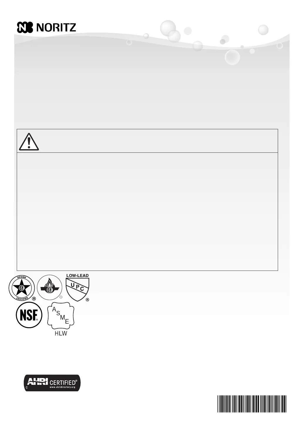 Thank you for purchasing this Noritz Tankless Gas Water Heater. Before