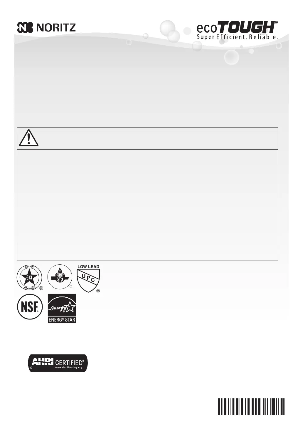 Thank you for purchasing this Noritz Tankless Gas Water Heater.