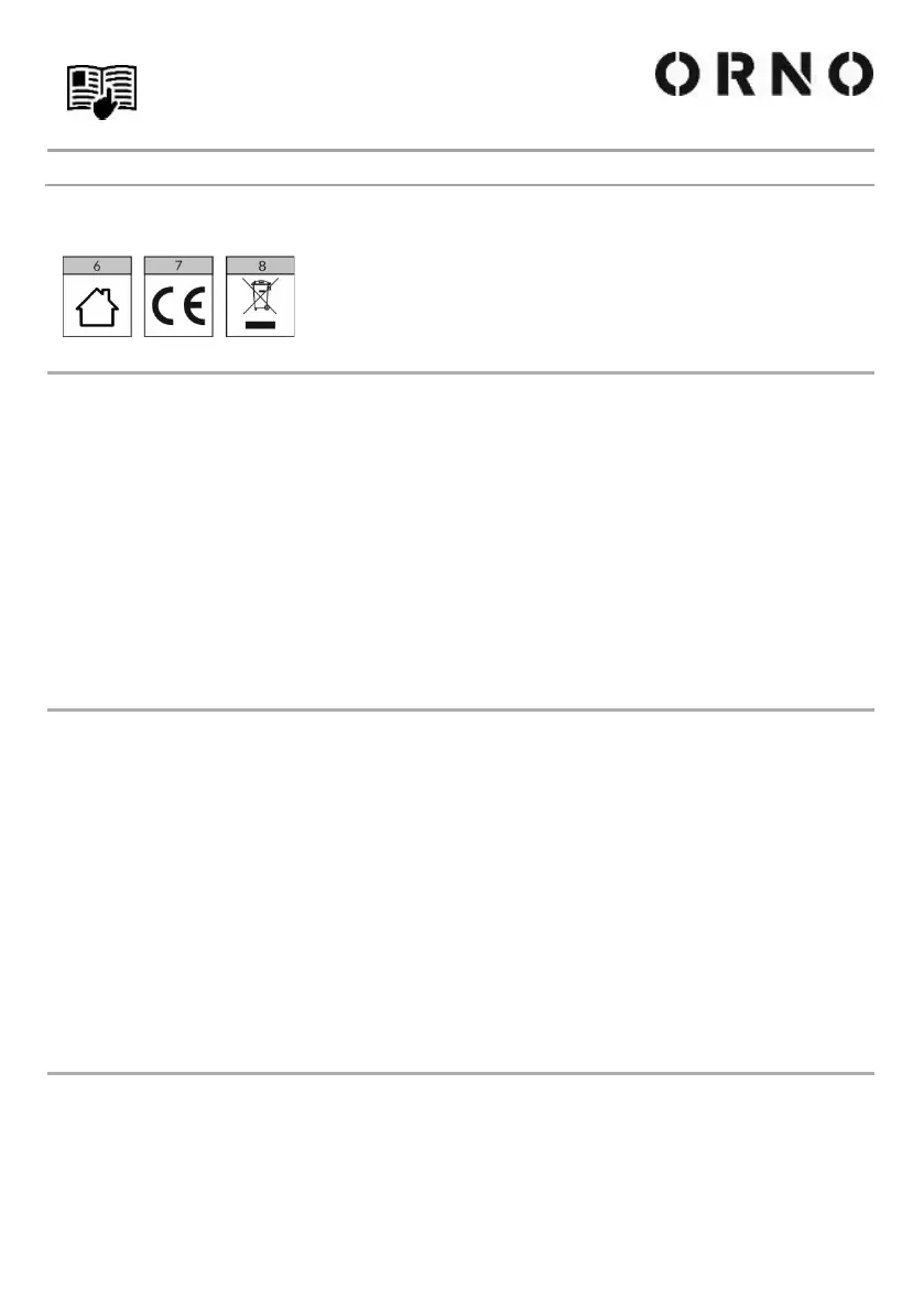 marki ORNO dostępne są na: www.orno.pl. Orno-Logistic Sp. z o.o. nie ponosi odpowiedzialności za skutki wynikające z nieprzestrzegania zaleceń niniejszej instrukcji.