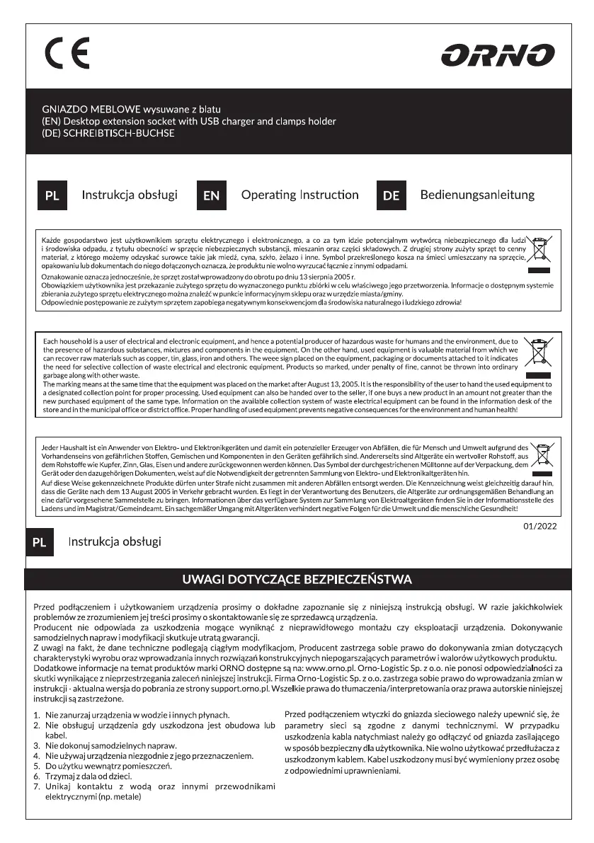 Lies die bedienungsanleitung für ORNO OR-AE-1352 (8 Seiten) kostenlos online; sie gehört zur Kategorie Steckdose. Dieses Handbuch wurde von 17 Personen als hilfreich bewertet und erhielt im Schnitt 4.9 Sterne aus 9 Bewertungen. Hast du eine Frage zu ORNO OR-AE-1352 oder möchtest du andere Nutzer dieses Produkts befragen? Stelle eine Frage