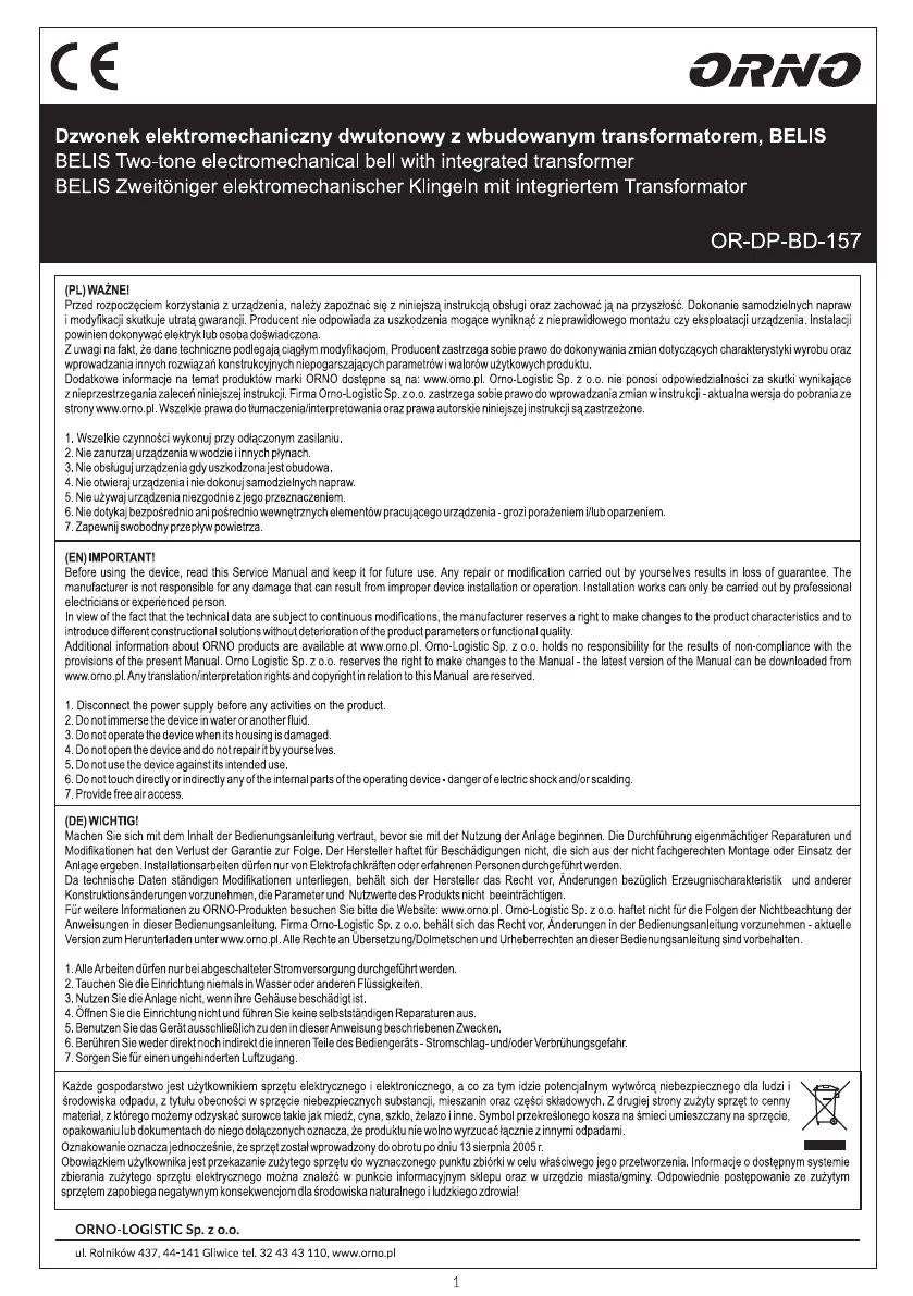 Bedienungsanleitung Türklingel ORNO
