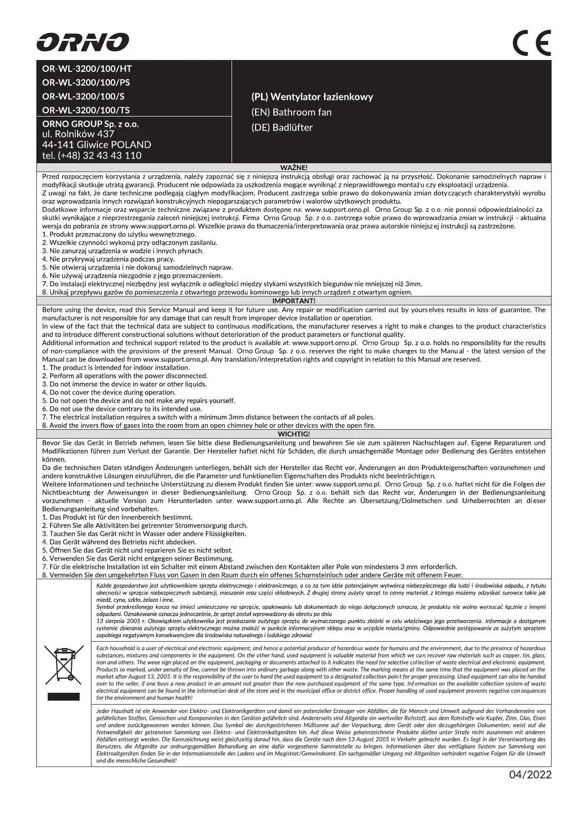 Lies die bedienungsanleitung für ORNO OR-WL-3200/100/TS (4 Seiten) kostenlos online; sie gehört zur Kategorie Ventilator. Dieses Handbuch wurde von 23 Personen als hilfreich bewertet und erhielt im Schnitt 4.4 Sterne aus 12 Bewertungen. Hast du eine Frage zu ORNO OR-WL-3200/100/TS oder möchtest du andere Nutzer dieses Produkts befragen? Stelle eine Frage