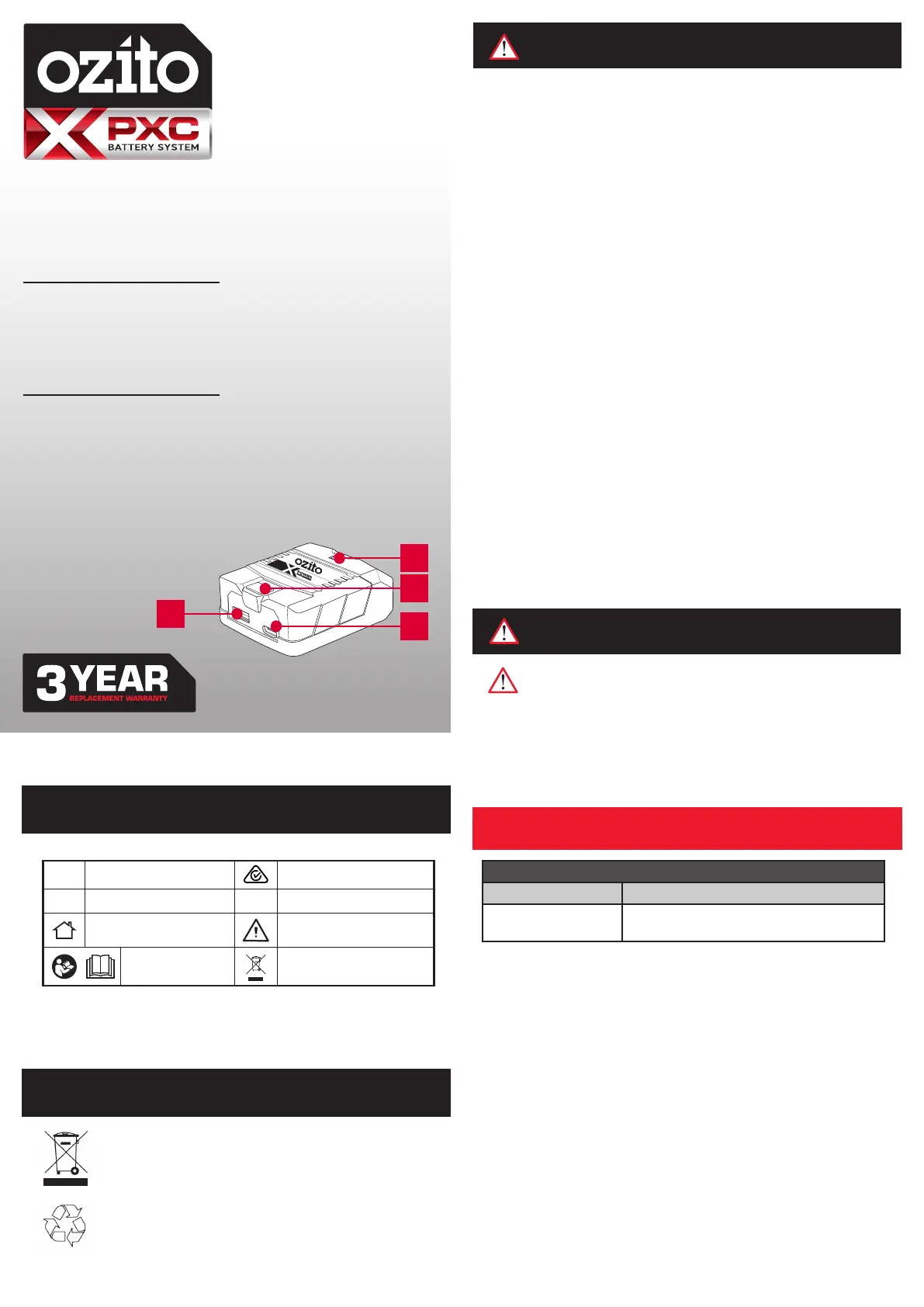 This appliance is compatible and only to be used with all batteries & chargers from the Ozito PXC range. Refer to the PXC