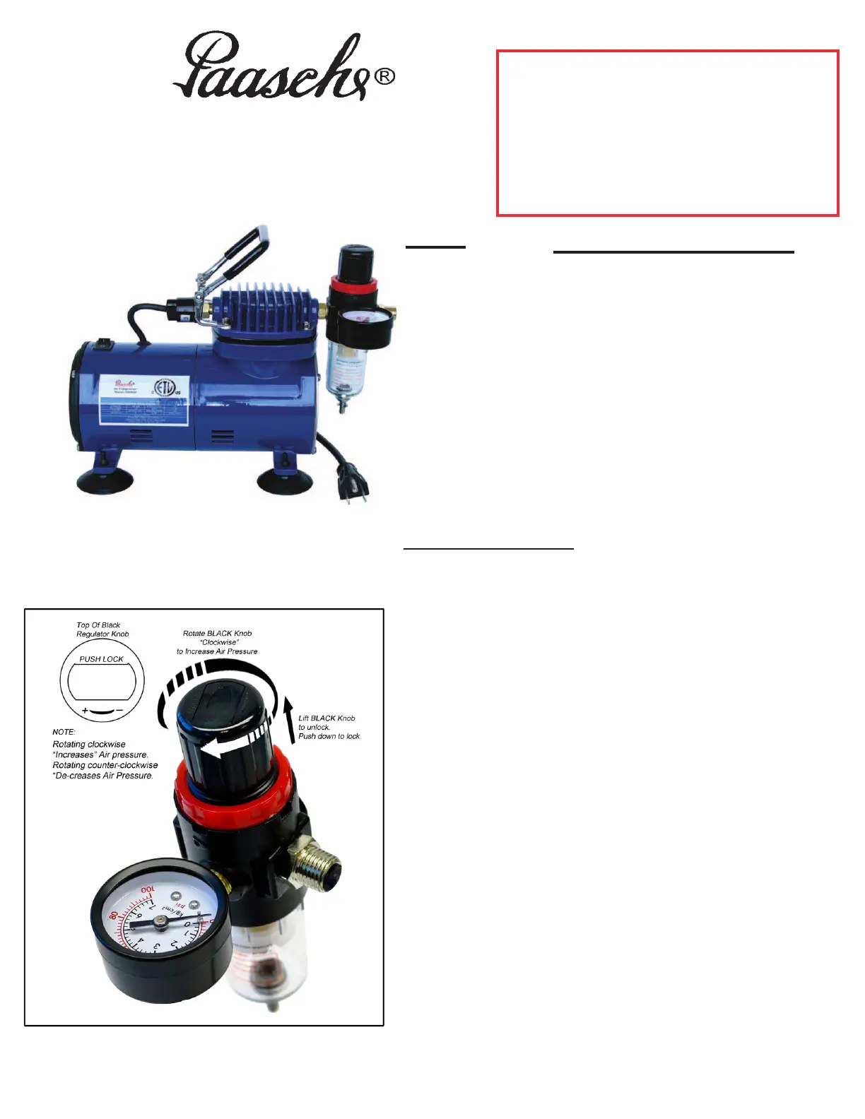 5) ) Lift Black Knob on top of Regulator to adjust air