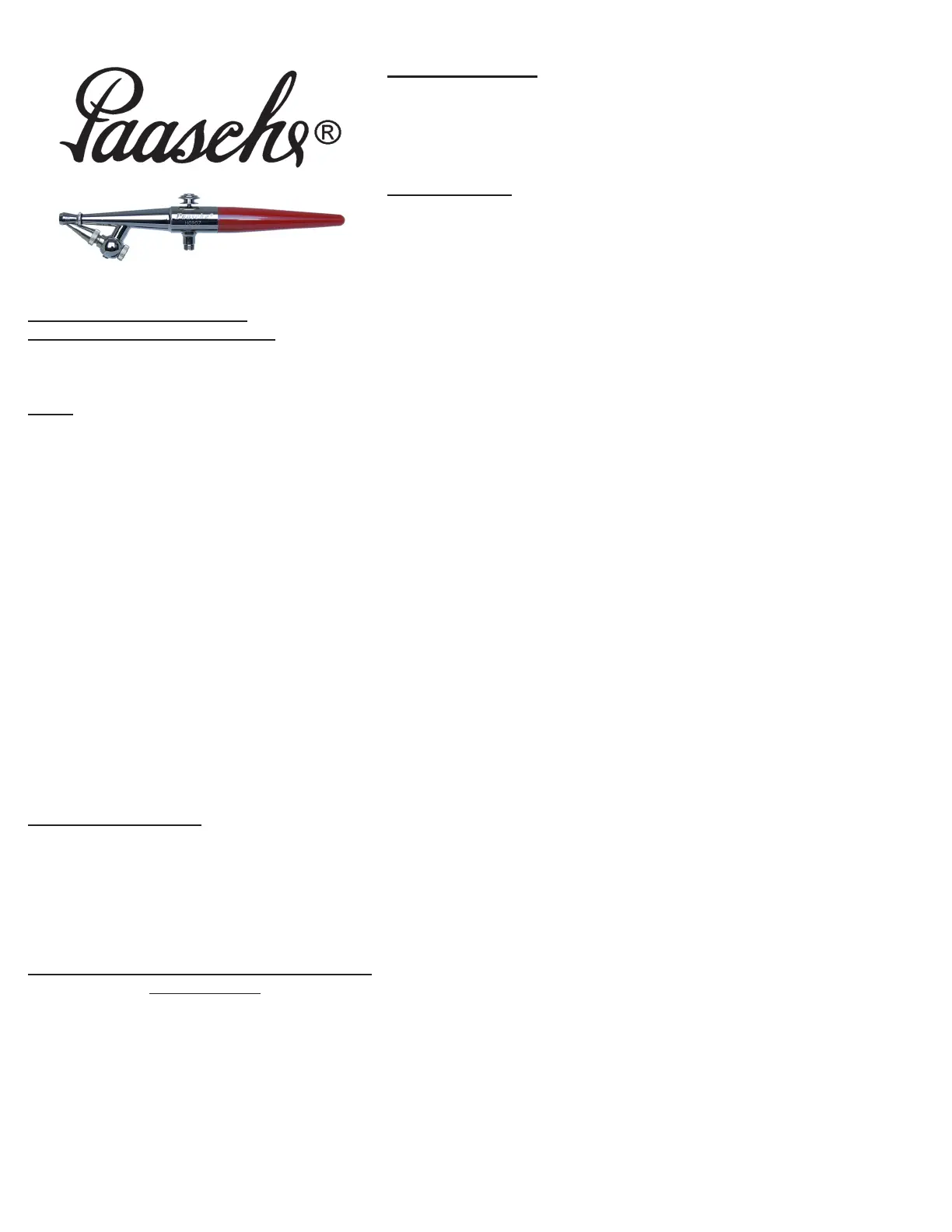 For Multi-Language Manuals Go To: www.paascheairbrush.com