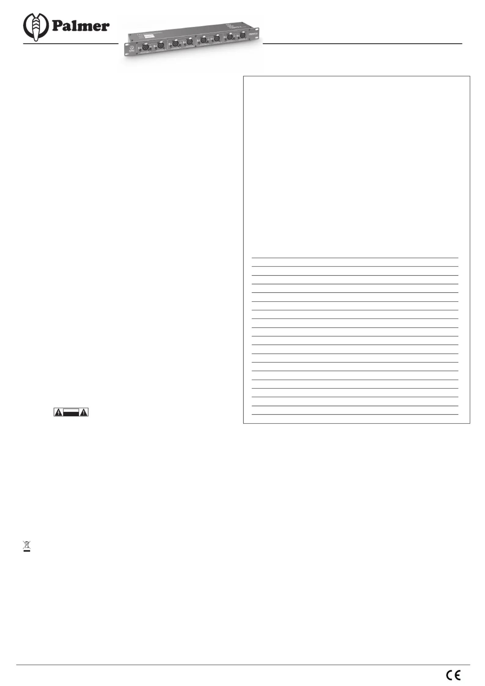Palmer PRMMS8 Bedienungsanleitung