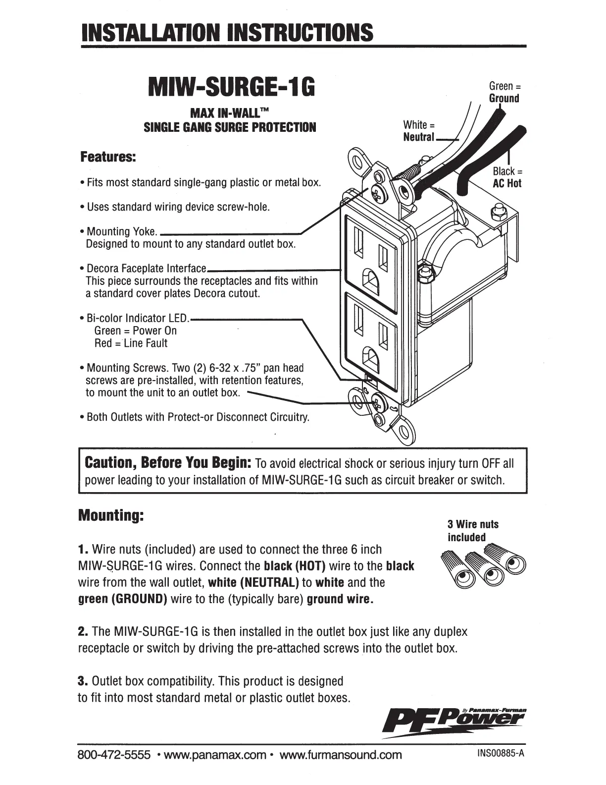 Panamax MIW-SURGE-1G Bedienungsanleitung