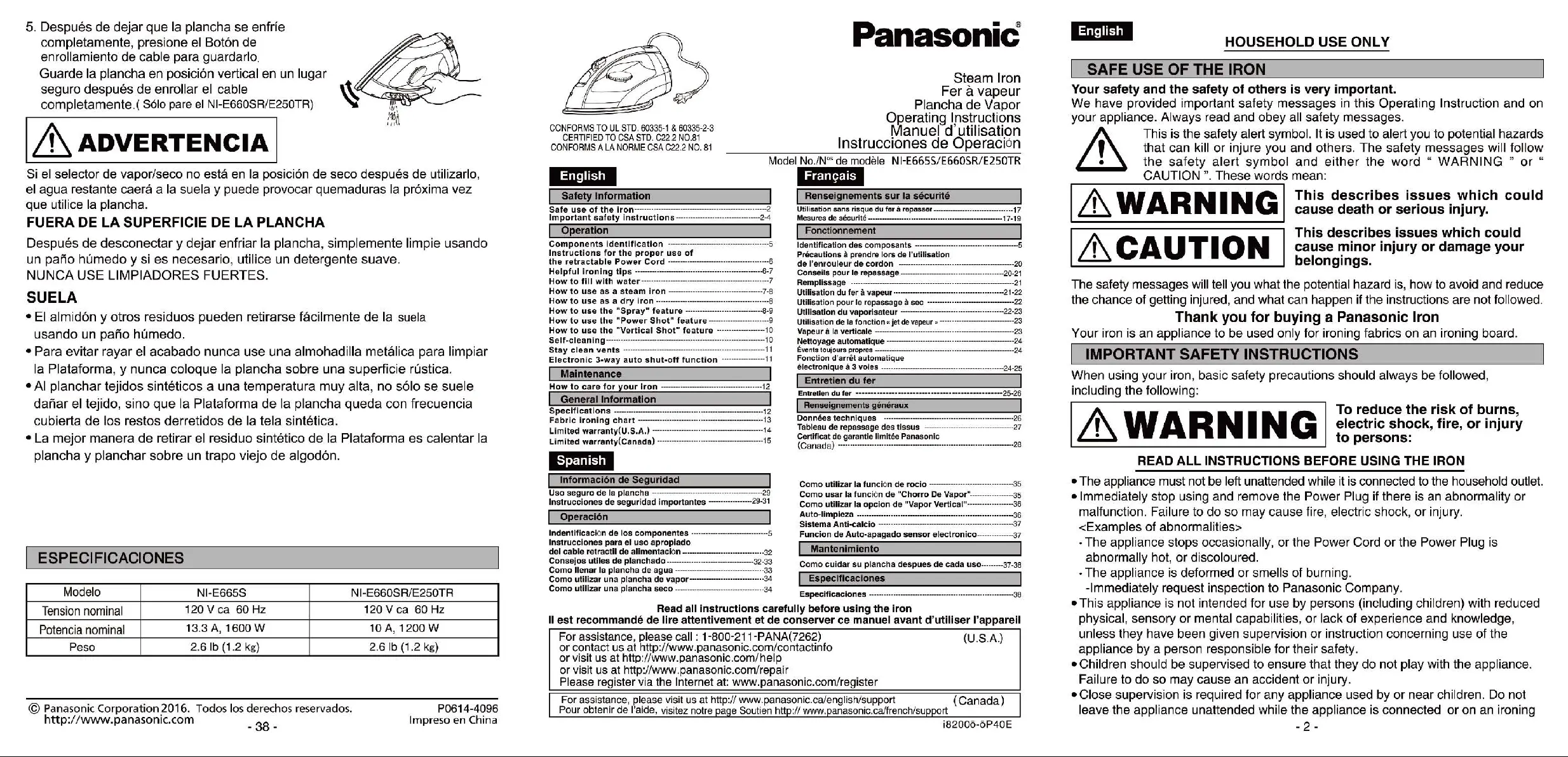 Panasonic NI-E250T Bedienungsanleitung