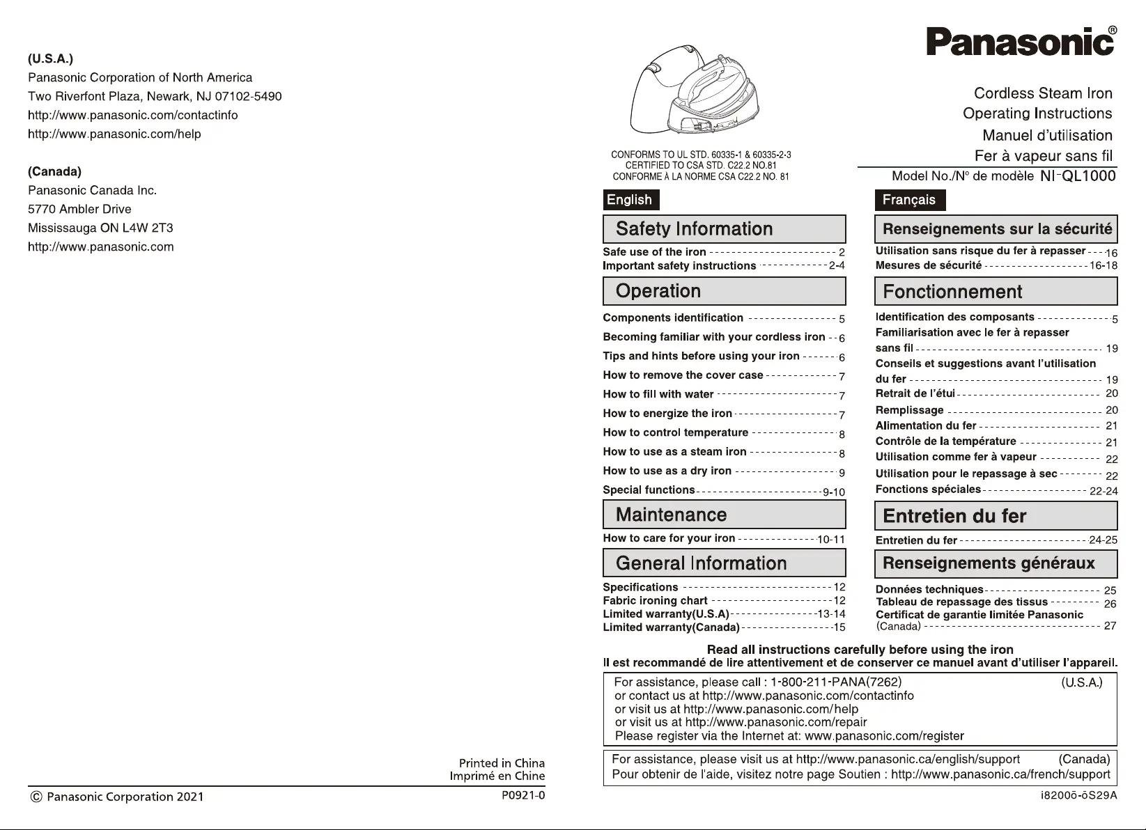 Panasonic NI-QL1000 Bedienungsanleitung