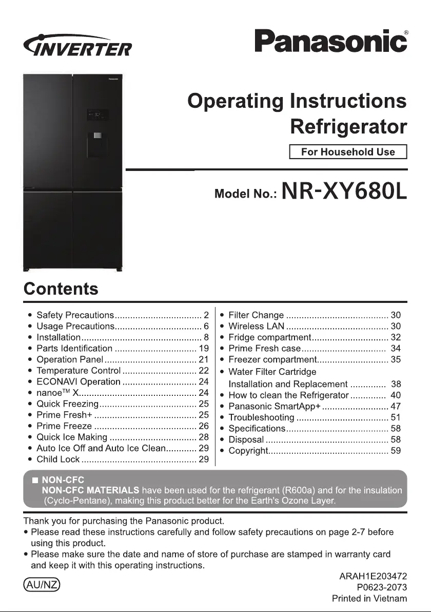 Lies die bedienungsanleitung für Panasonic NR-XY680L (60 Seiten) kostenlos online; sie gehört zur Kategorie Kühlschrank. Dieses Handbuch wurde von 7 Personen als hilfreich bewertet und erhielt im Schnitt 4.3 Sterne aus 4 Bewertungen. Hast du eine Frage zu Panasonic NR-XY680L oder möchtest du andere Nutzer dieses Produkts befragen? Stelle eine Frage