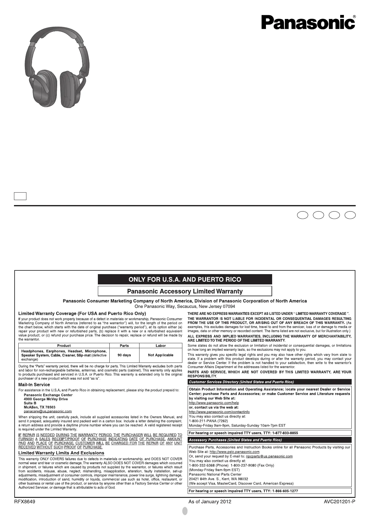 Bedienungsanleitung Kopfhörer Panasonic