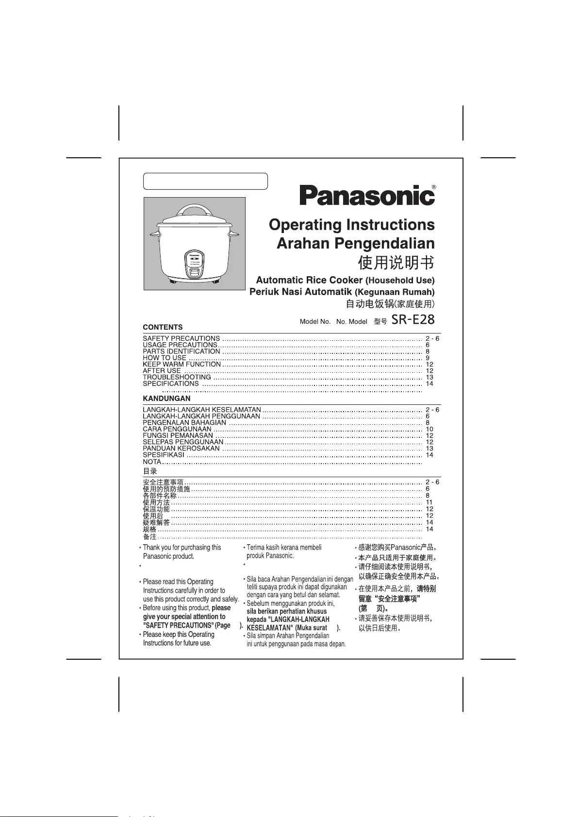 Panasonic SR-E28 Bedienungsanleitung