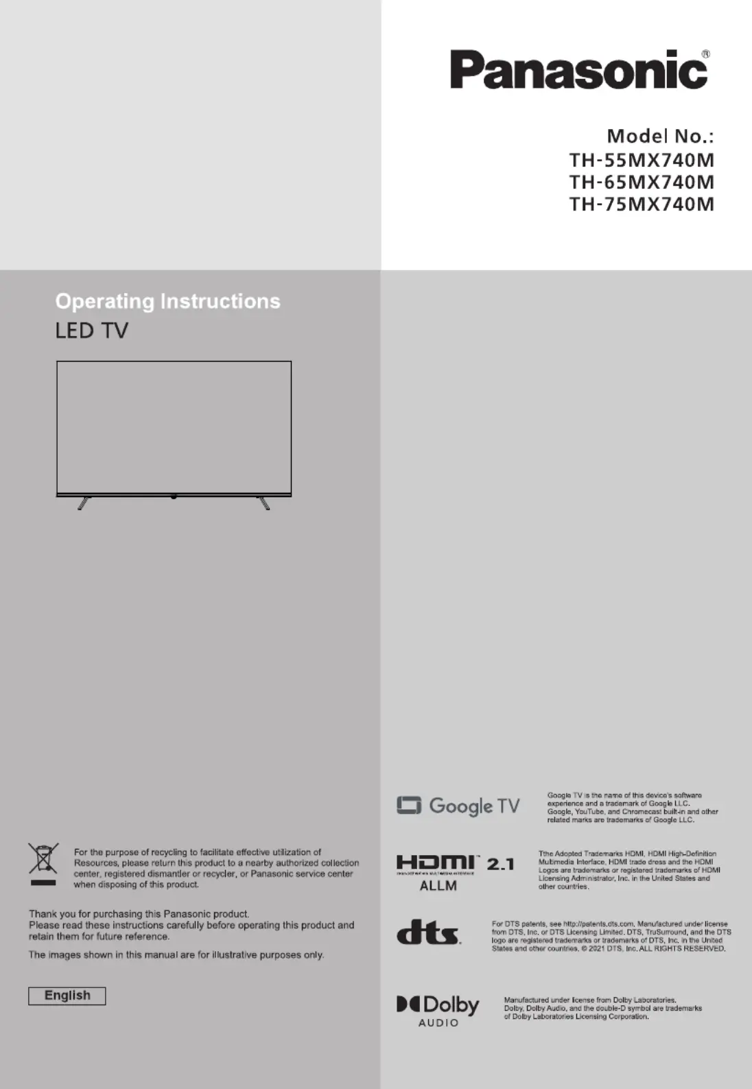 Lies die bedienungsanleitung für Panasonic TH-75MX740M (26 Seiten) kostenlos online; sie gehört zur Kategorie Fernsehen. Dieses Handbuch wurde von 32 Personen als hilfreich bewertet und erhielt im Schnitt 4.6 Sterne aus 16.5 Bewertungen. Hast du eine Frage zu Panasonic TH-75MX740M oder möchtest du andere Nutzer dieses Produkts befragen? Stelle eine Frage