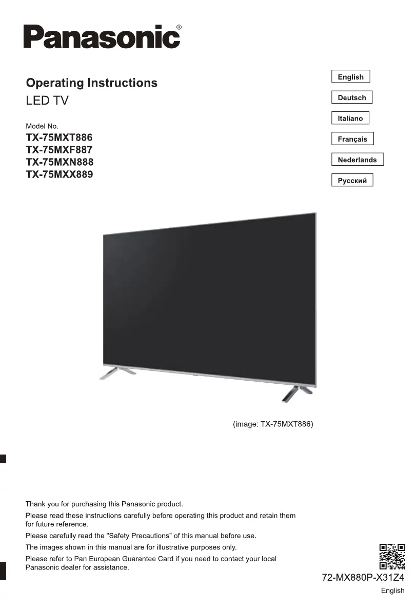 Lies die bedienungsanleitung für Panasonic TX-75MXX889 (131 Seiten) kostenlos online; sie gehört zur Kategorie Fernseher. Dieses Handbuch wurde von 4 Personen als hilfreich bewertet und erhielt im Schnitt 5.0 Sterne aus 2.5 Bewertungen. Hast du eine Frage zu Panasonic TX-75MXX889 oder möchtest du andere Nutzer dieses Produkts befragen? Stelle eine Frage