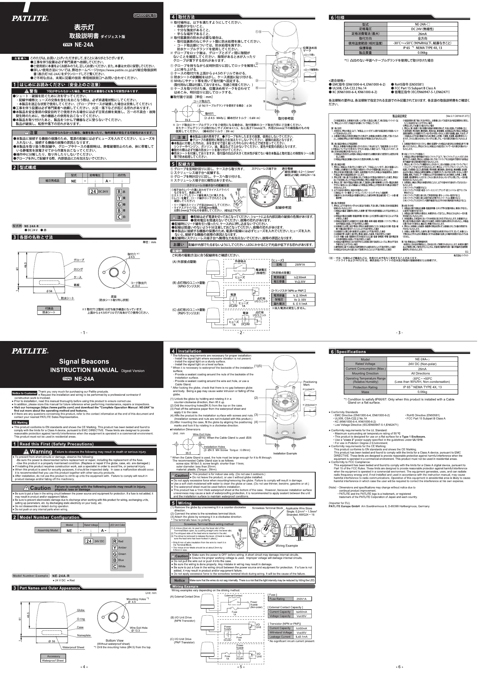 PATLITE NE-24A-Y Bedienungsanleitung