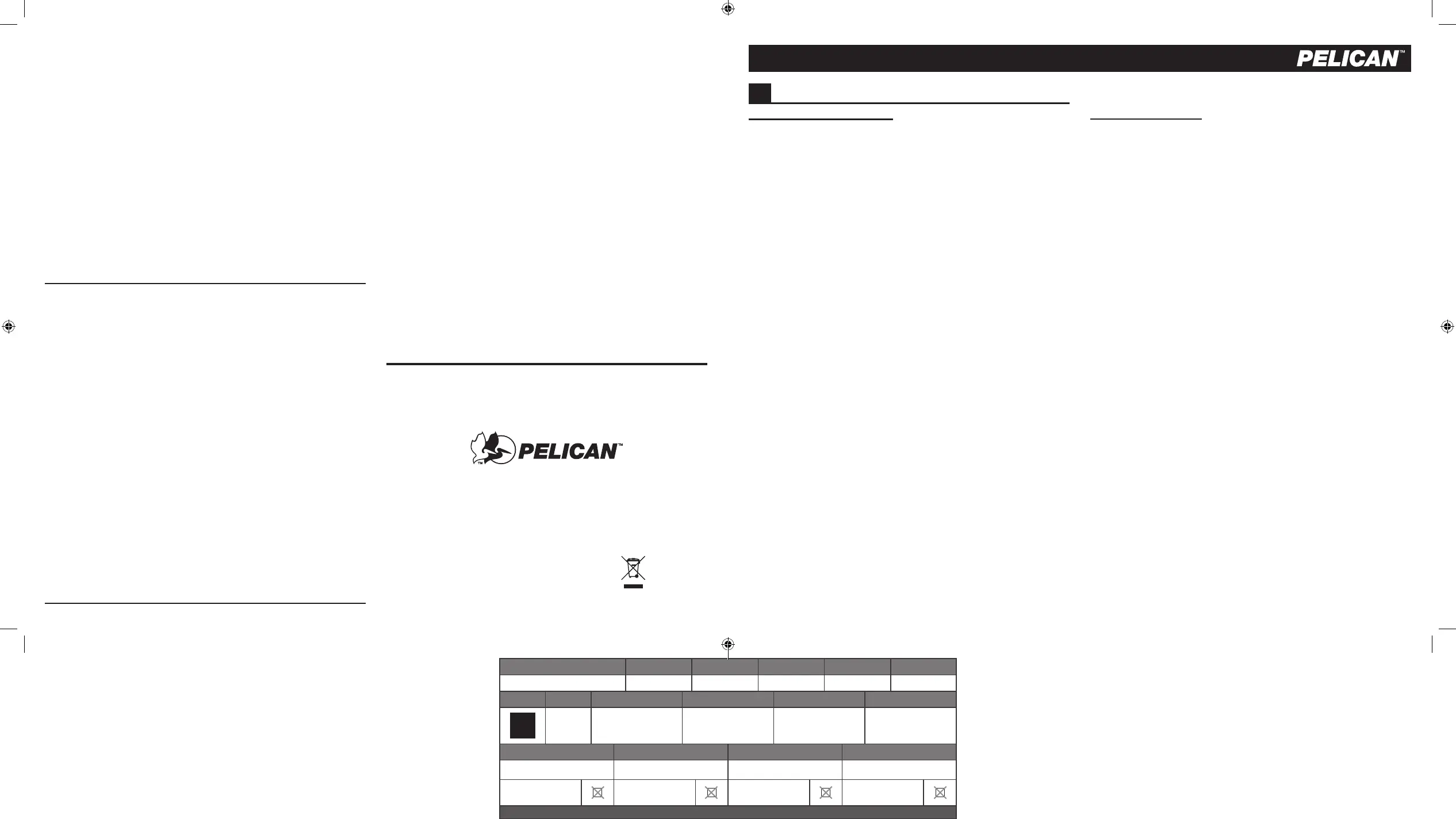 Pelican s’engage à réparer ou à remplacer tout produit défectueux, à sa seule discrétion. Certains