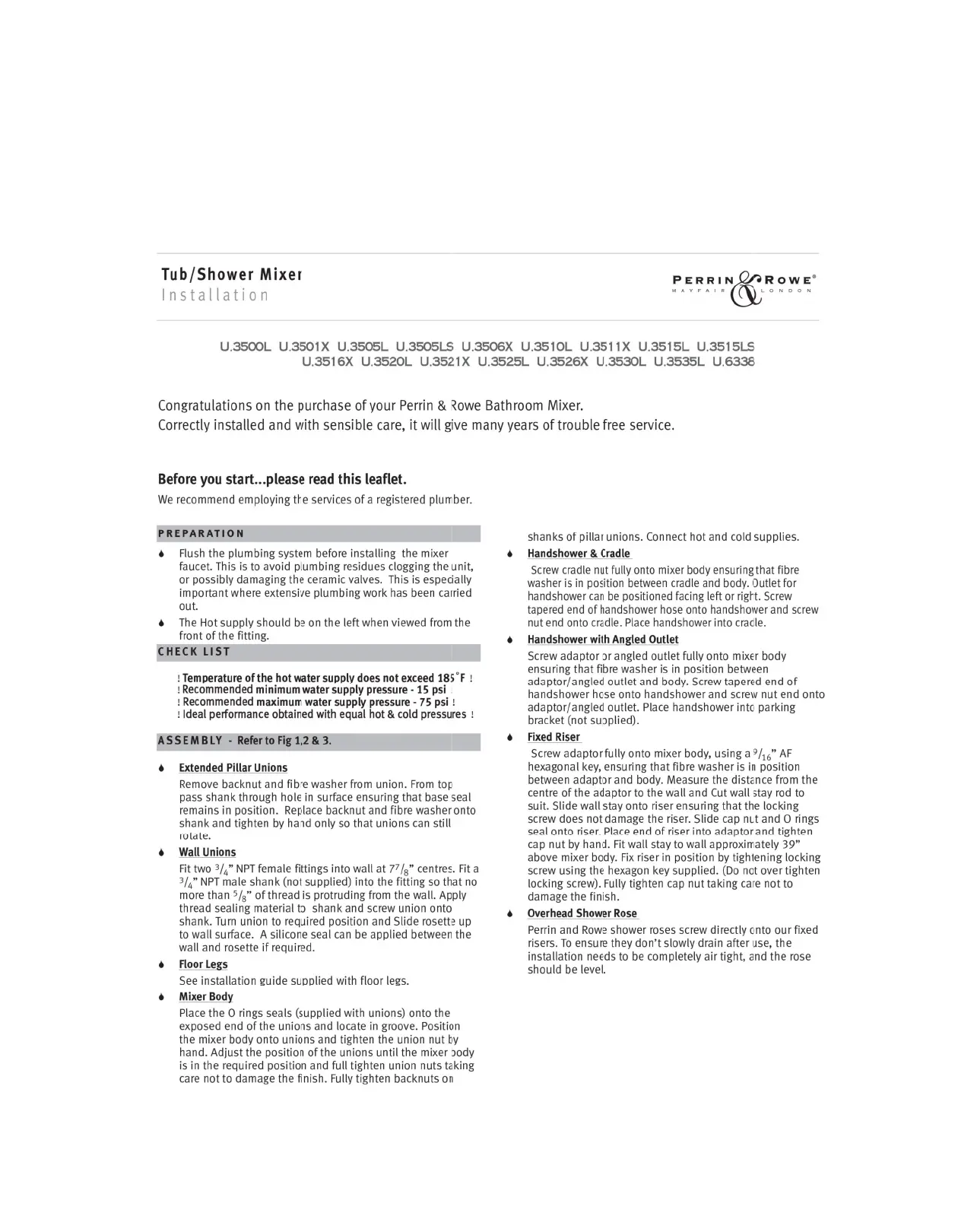 Lies die bedienungsanleitung für Perrin & Rowe U.3521X (5 Seiten) kostenlos online; sie gehört zur Kategorie Nicht kategorisiert. Dieses Handbuch wurde von 9 Personen als hilfreich bewertet und erhielt im Schnitt 5.0 Sterne aus 7 Bewertungen. Hast du eine Frage zu Perrin & Rowe U.3521X oder möchtest du andere Nutzer dieses Produkts befragen? Stelle eine Frage