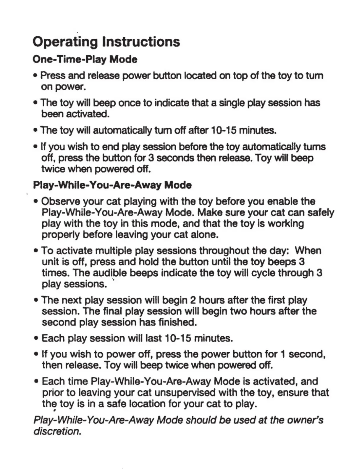 end play session before the toy automatically turns
