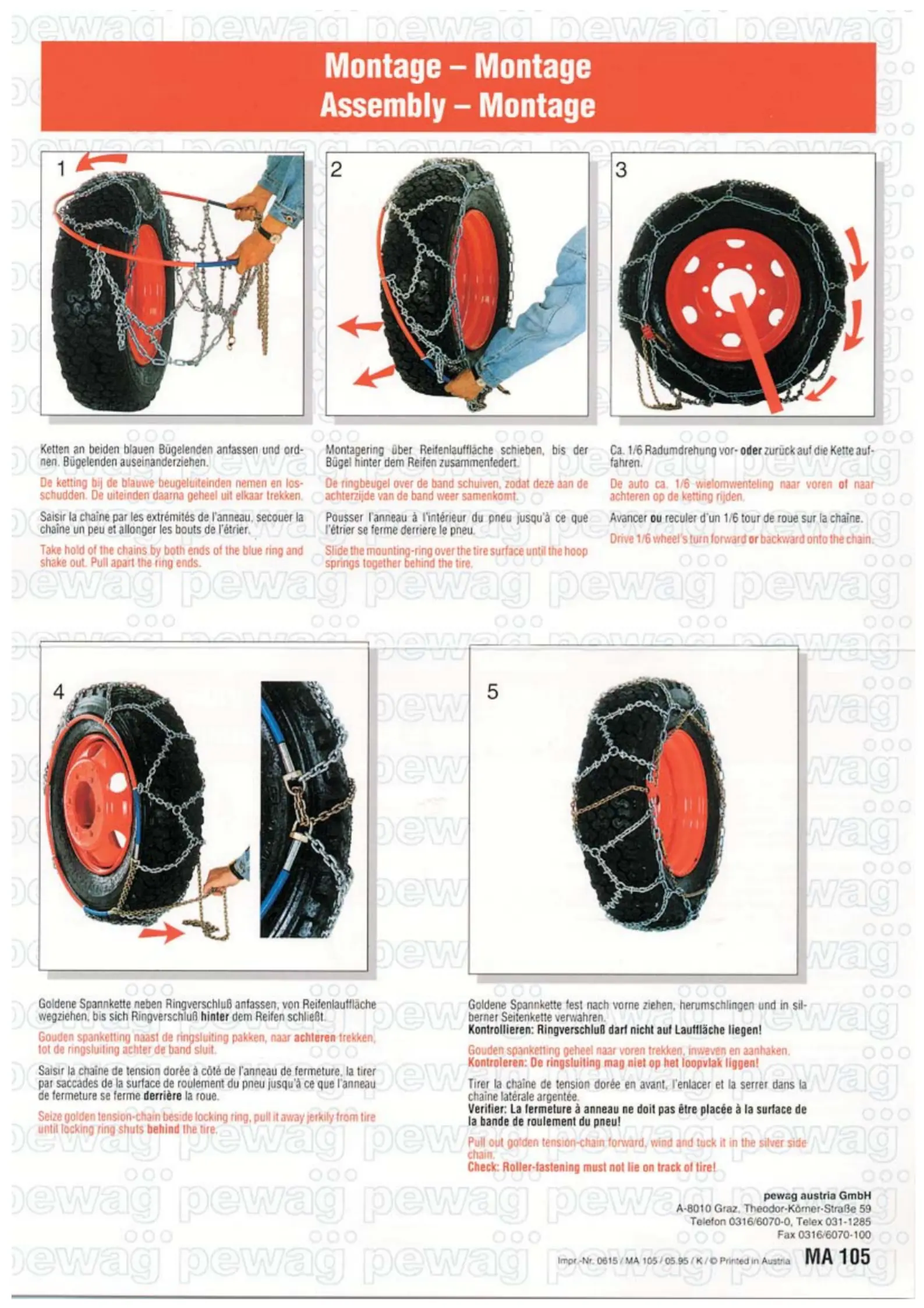 Bedienungsanleitung Schneekette Pewag