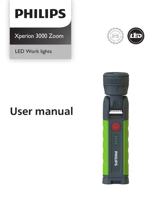 Lies die bedienungsanleitung für Philips Xperion 3000 LUMX30ZOOMX1 (16 Seiten) kostenlos online; sie gehört zur Kategorie Taschenlampe. Dieses Handbuch wurde von 9 Personen als hilfreich bewertet und erhielt im Schnitt 4.7 Sterne aus 5 Bewertungen. Hast du eine Frage zu Philips Xperion 3000 LUMX30ZOOMX1 oder möchtest du andere Nutzer dieses Produkts befragen? Stelle eine Frage