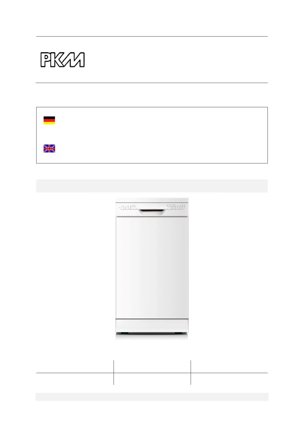 Bedienungsanleitung Spülmaschine PKM