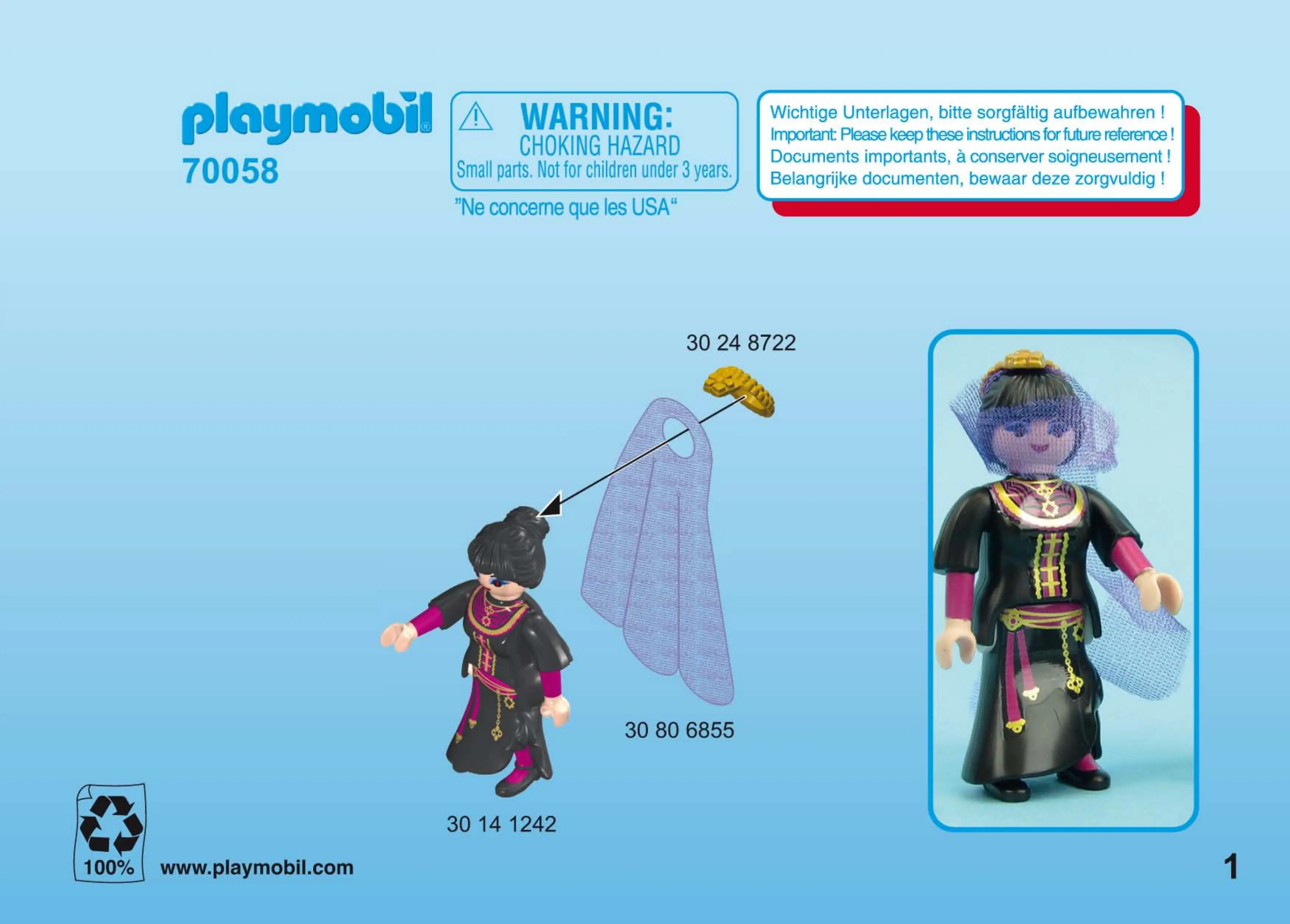 Lies die bedienungsanleitung für Playmobil 70058 (2 Seiten) kostenlos online; sie gehört zur Kategorie Spielzeug. Dieses Handbuch wurde von 19 Personen als hilfreich bewertet und erhielt im Schnitt 4.4 Sterne aus 10 Bewertungen. Hast du eine Frage zu Playmobil 70058 oder möchtest du andere Nutzer dieses Produkts befragen? Stelle eine Frage
